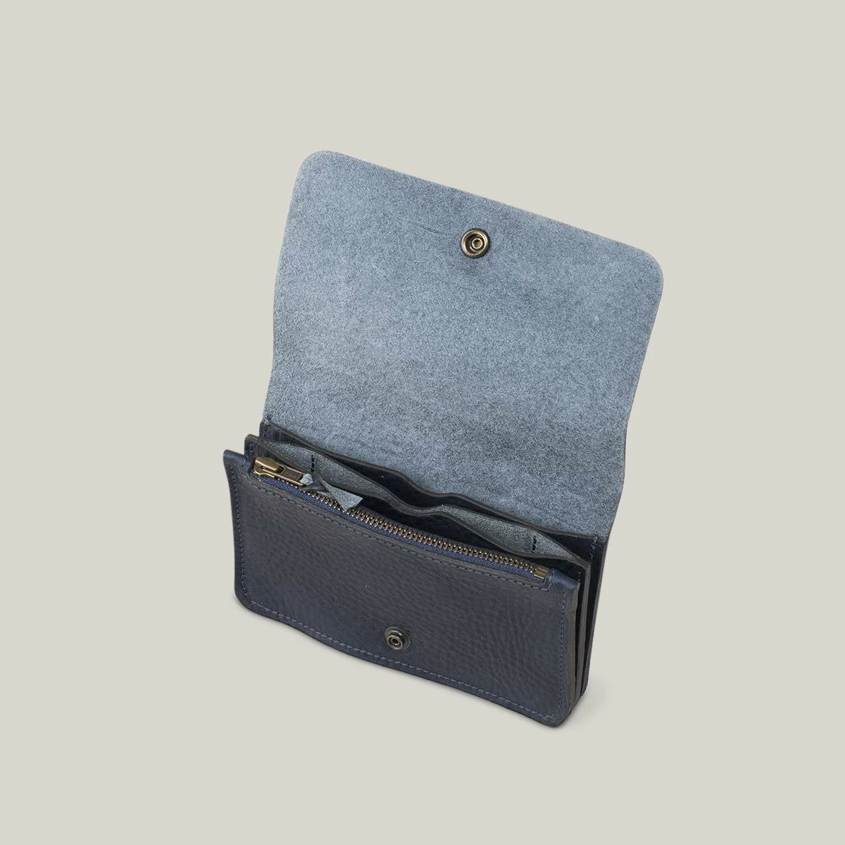 Grisbi wallet is made of vegetable tanned leather. It will perfectly match any of your Bleu de Chauffe bags. The Grisbi wallet is very functional and its size is ideal. Grisbi has four compartments, for your credit cards, your tickets and your IDs, and an additional zipped pocket for coins.