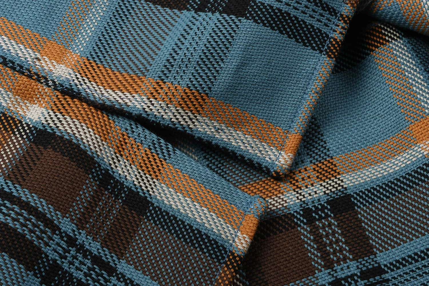 The Webster returns in a twill check. The fit is boxy with a flat hem base. Details include twin chest pockets and cat’s eye buttons used throughout.