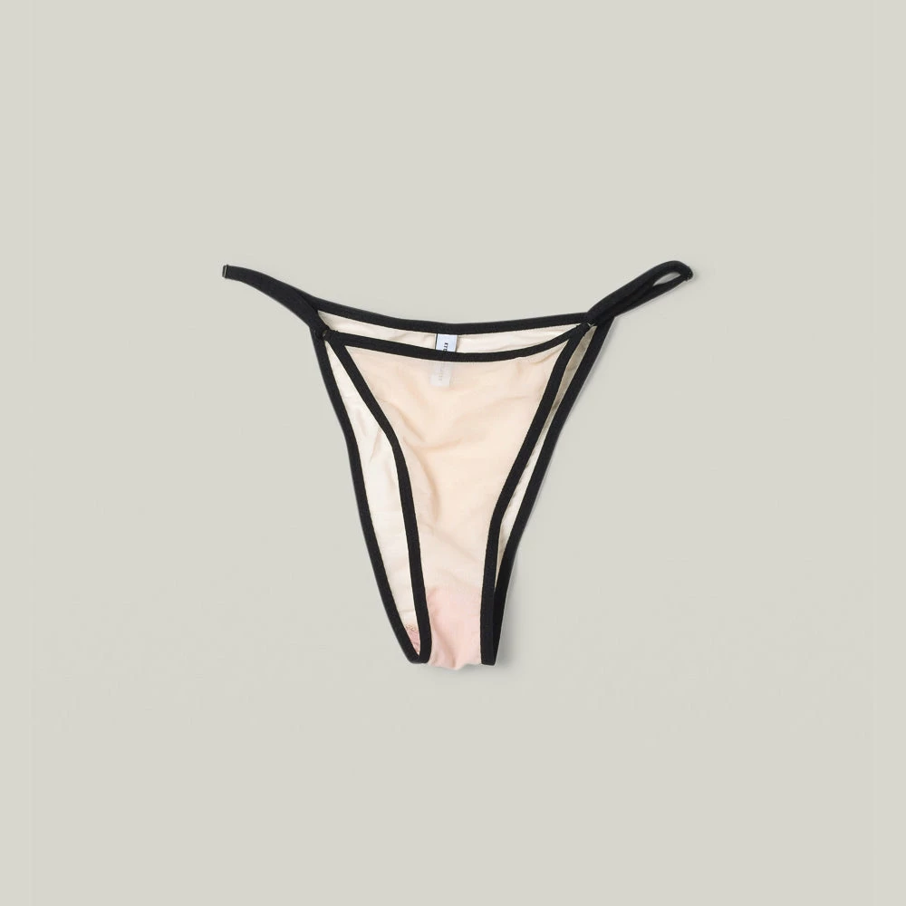 Functional and delicate, the Essential String Bikini was inspired by Eileen Gray whose minimalist, modern designs evoke deep sensuality. Features light front and back coverage with adjustable sliders on waistband for ease of wear. Made in our premium deadstock mesh sourced from warehouses in Los Angeles, with a 100% cotton lining.