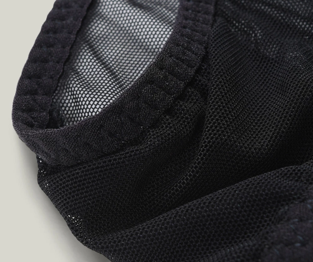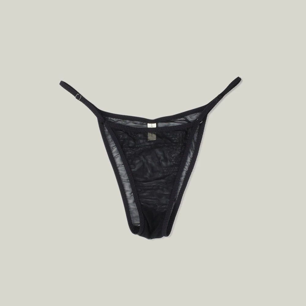 Functional and delicate, the Essential String Bikini was inspired by Eileen Gray whose minimalist, modern designs evoke deep sensuality. Features light front and back coverage with adjustable sliders on waistband for ease of wear. Made in our premium deadstock mesh sourced from warehouses in Los Angeles, with a 100% cotton lining.