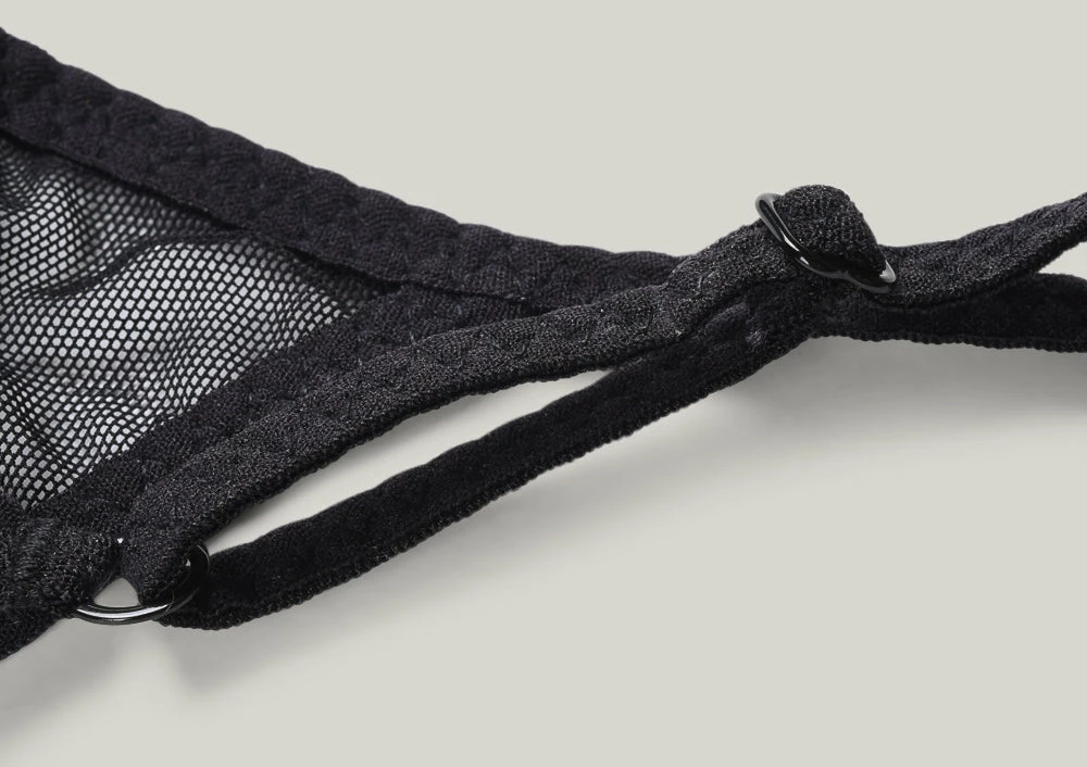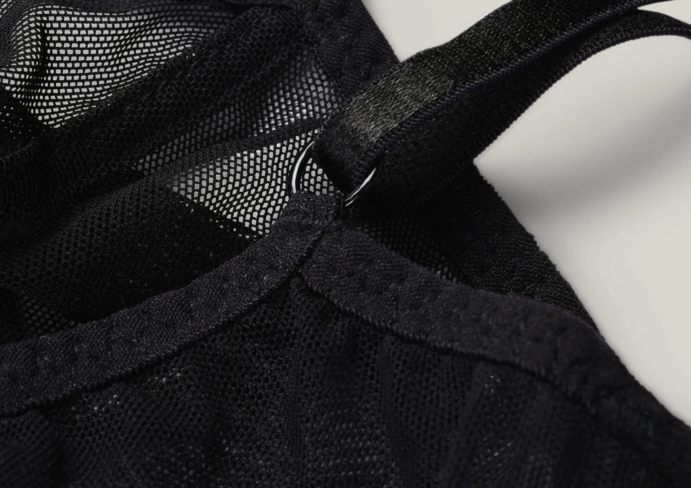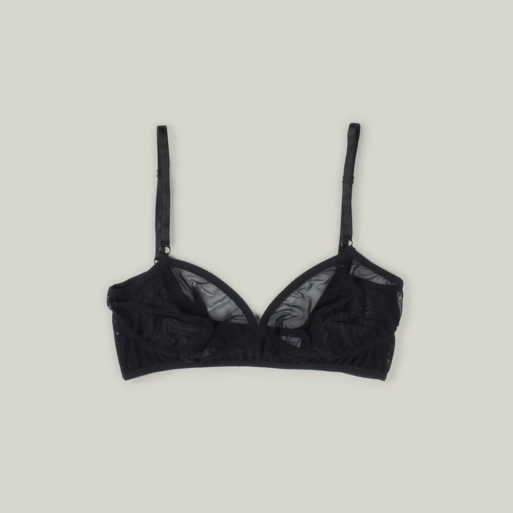 Equal parts structure and ease, our wire-free balconette is a modern nod to mid century intimates. An easy v neckline with adjustable elasticized straps and back closure offer moderate support for everyday wear. Made in our premium deadstock mesh sourced from warehouses in Los Angeles, with tailored, single layer cups and a double layer frame at underbust for added support.