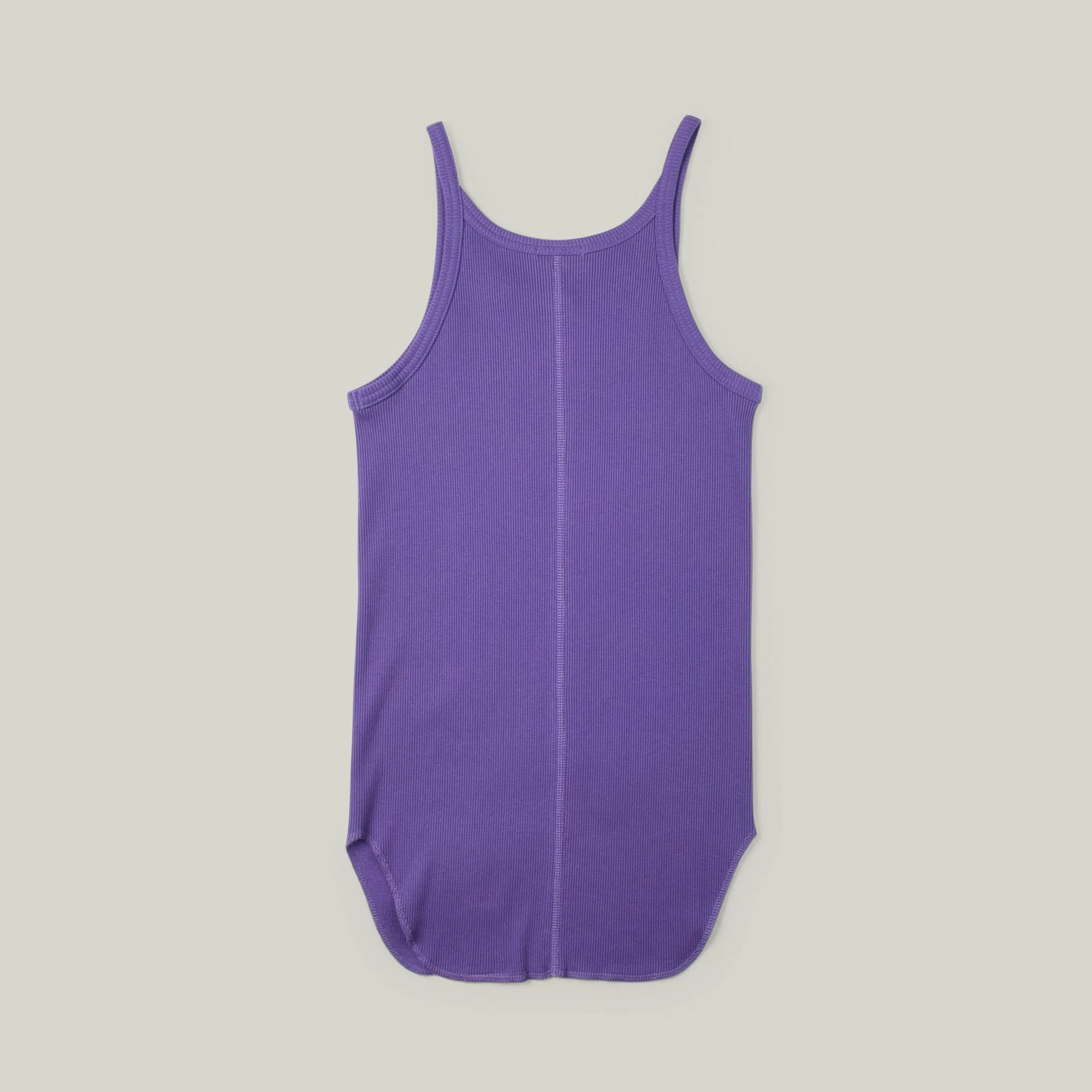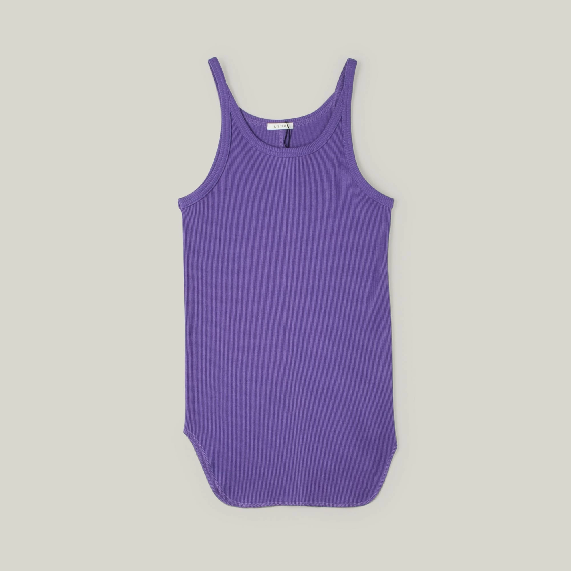 Luxury Leno basics with this luxuriously soft tank top in ribbed cotton. With a nice thick ribbing on the neck and straps, the sides are seamless with a flat lock seam running down the spine and finishing the base of the garment.