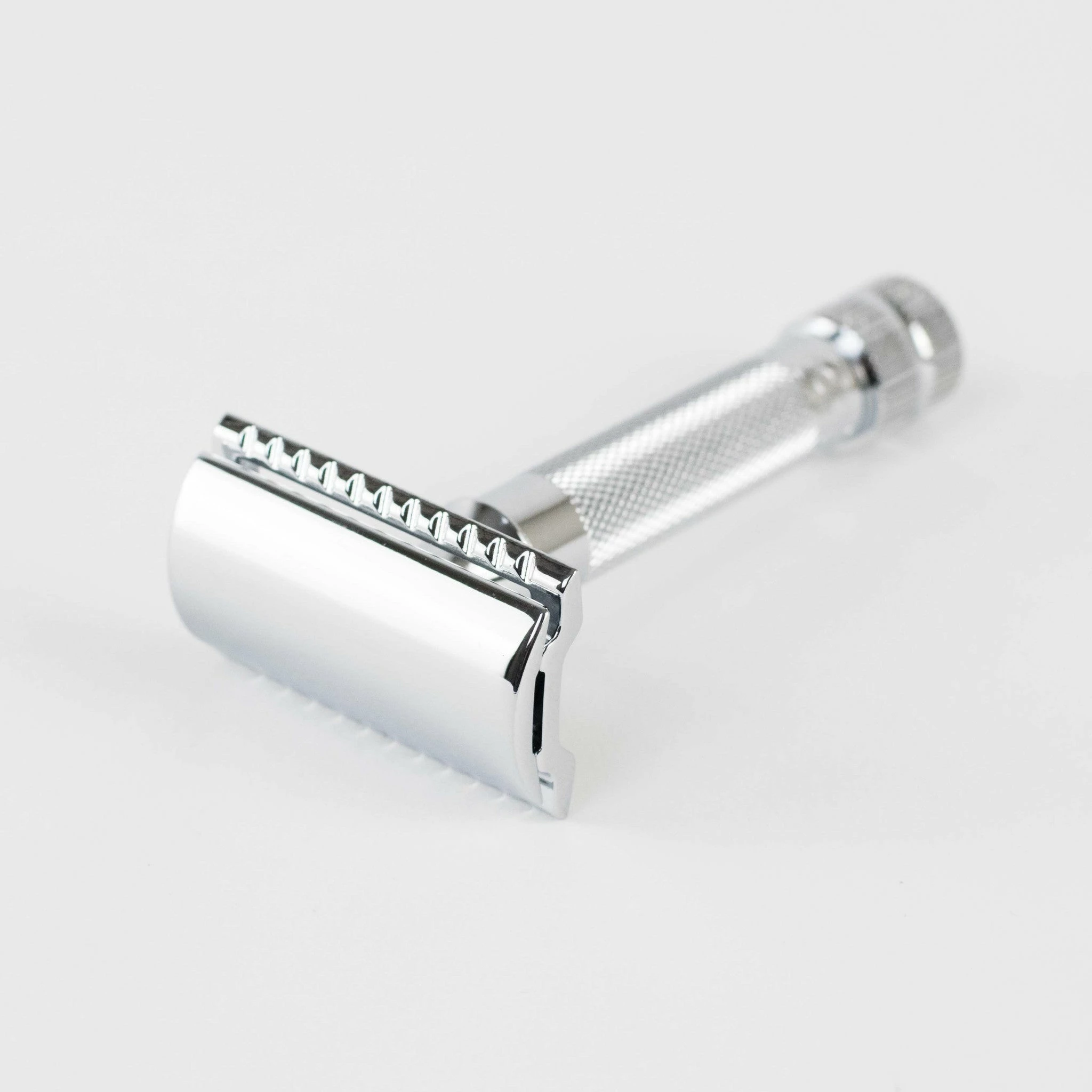 The 34C Merkur HD Double Edge Razor is, in our opion, one of the most balanced razors in the Merkur line. The fixed blade exposure makes this the ideal first razor for a novice and the slightly thicker, heavier handle along with the more sophisticated 2-piece construction, give it more tactility and solidity in the hand.