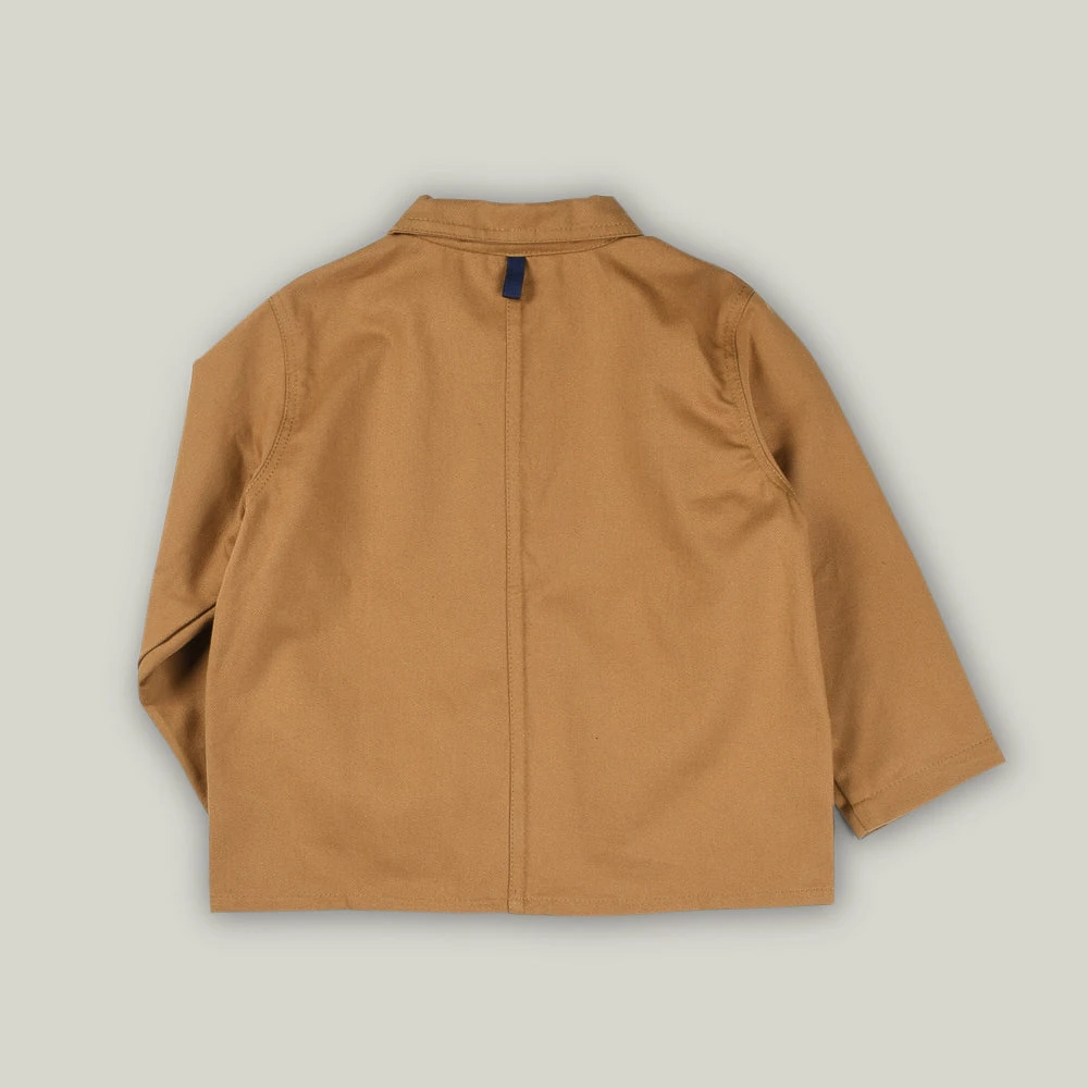 Inspired by the classic workers chore jacket, constructed from 100% pure cotton quality canvas. Simple contemporary design with modern detailing and practical pockets for storing treasures tools and toys.