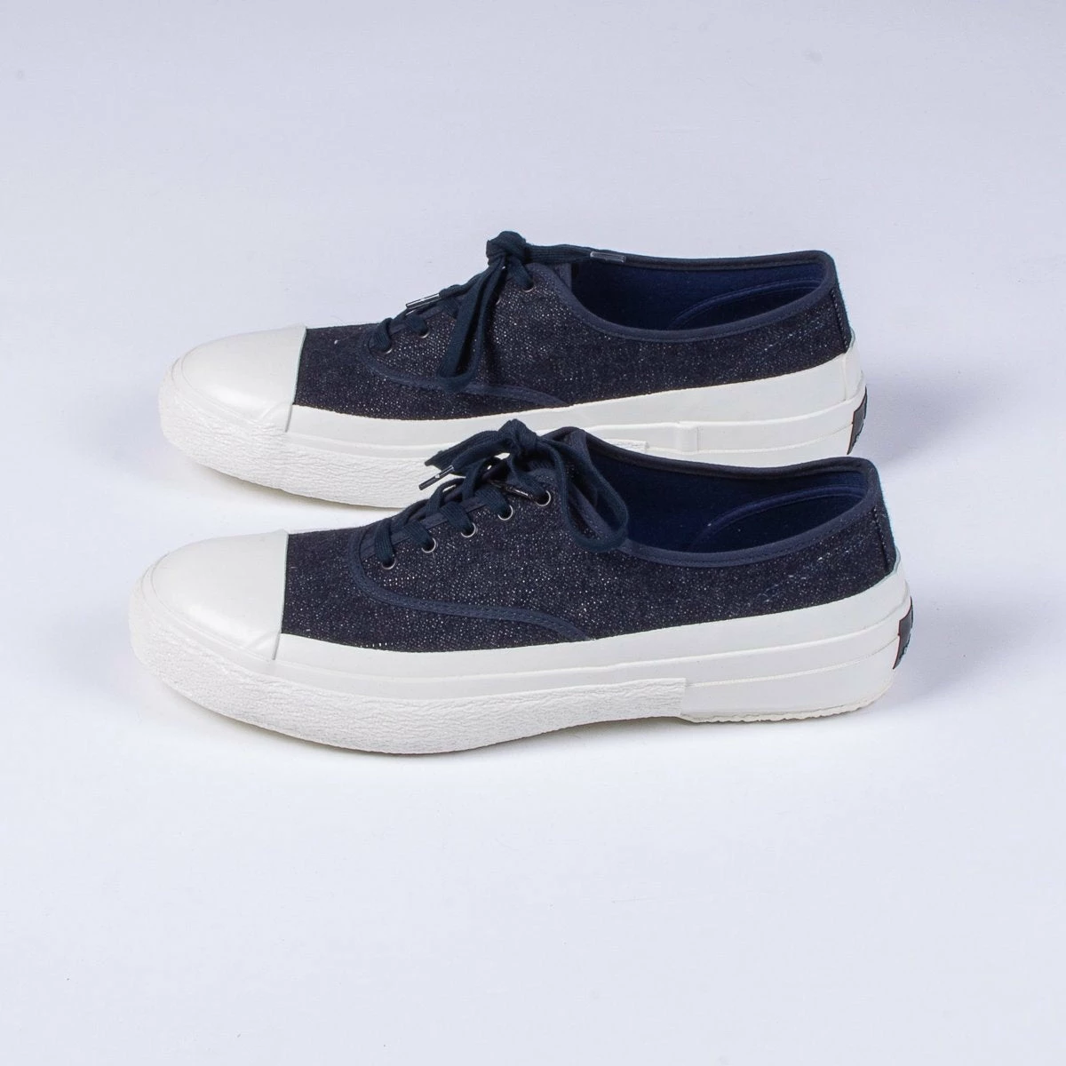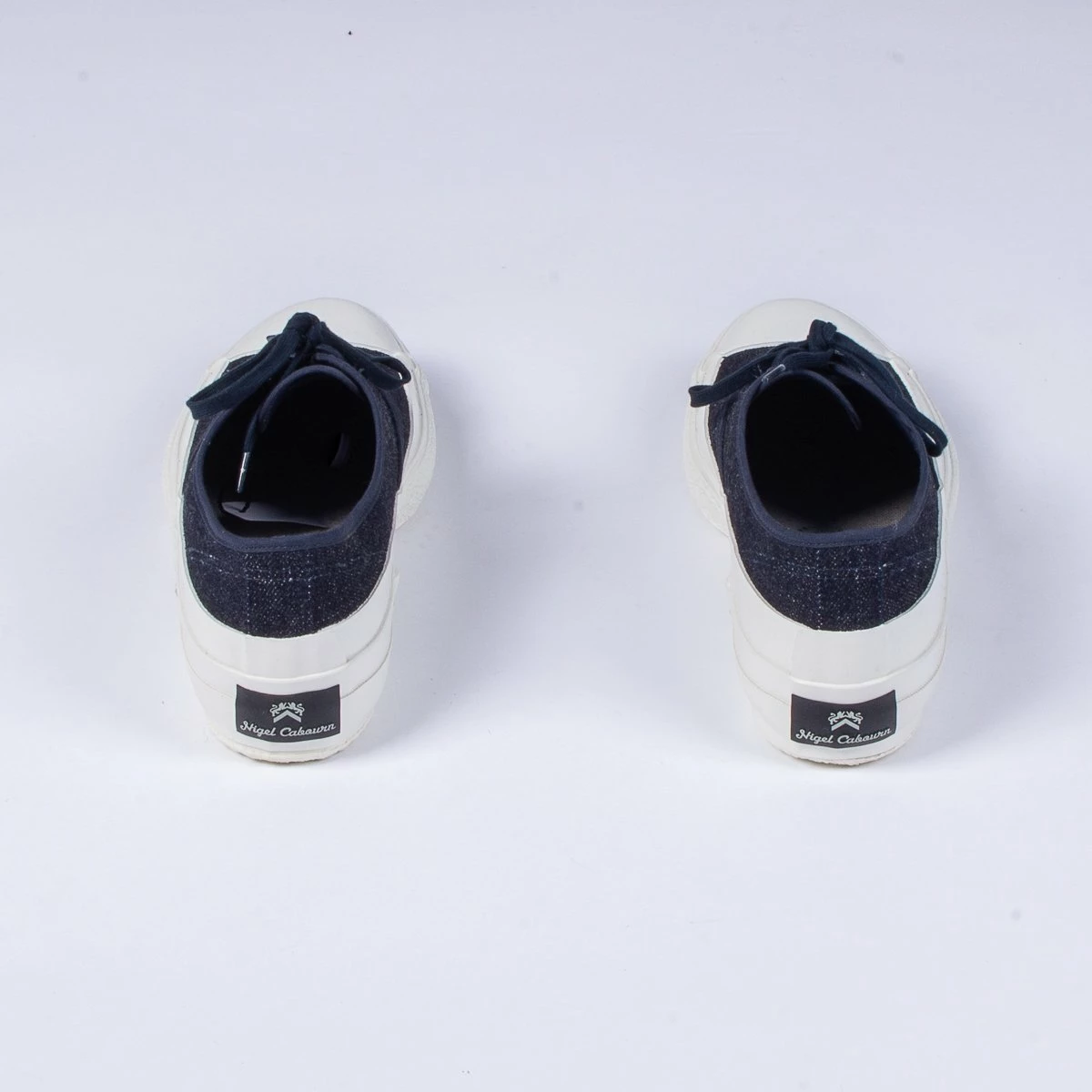 This season Nigel has taken inspiration from a 1940’s deck shoe, this version is constructed in a blue 16oz denim with thick white rubber vulcanised sole that covers the entire front toe section.