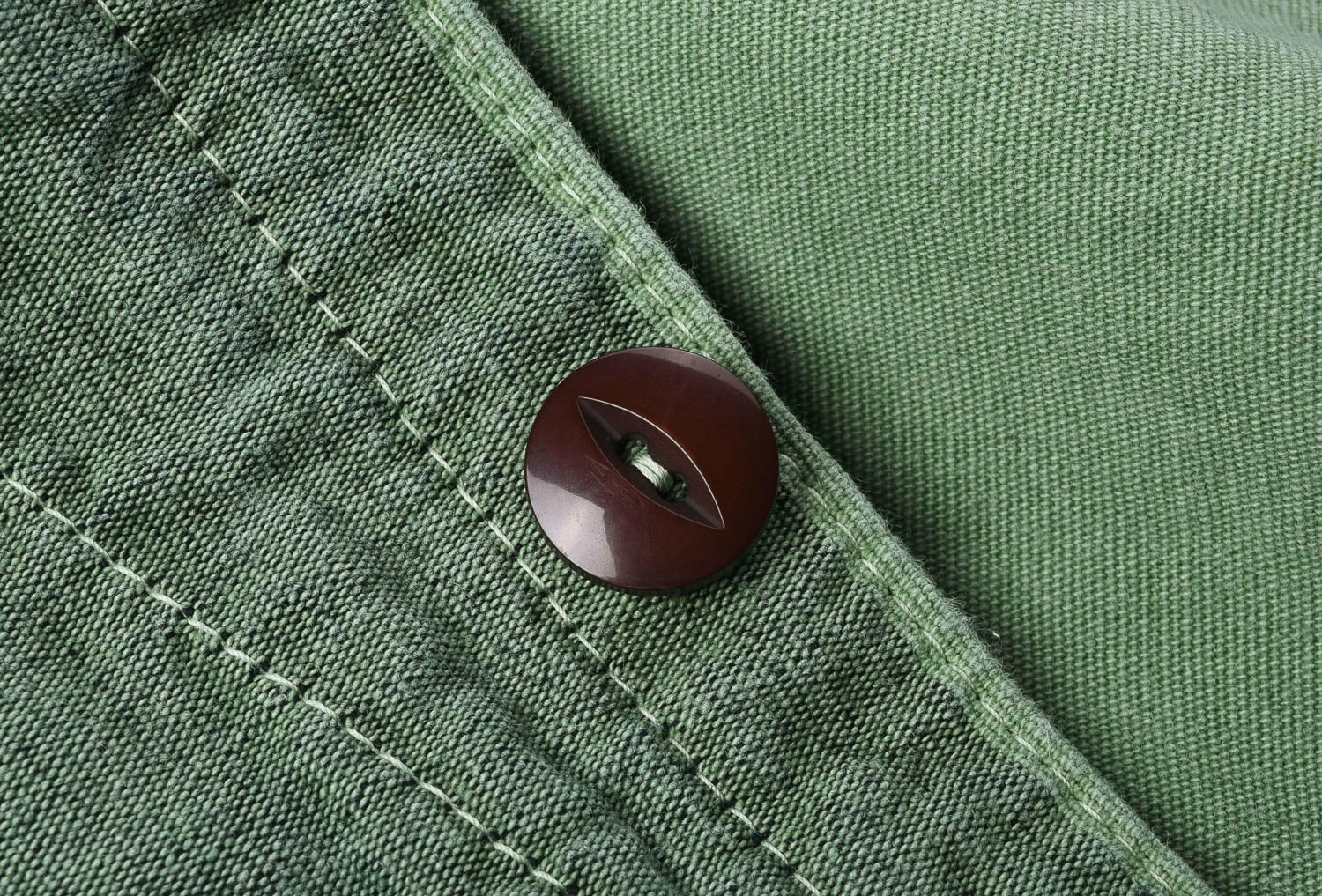 This one is dyed with Chlorophyll, a dye hard to obtain due to it denaturing and changing to darker brown. It imparts a delicate green, softer than mineral dyes such as viridian or verdigris, and cleaner than mixed greens like those derived from turmeric and indigo.